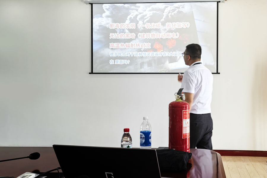 講師詳細講解了火災發生時的應急處理措施,包括如何判斷火勢、選擇正確的逃生路線、避煙技巧等。同時,講師還介紹了逃生過程中需注意的事項,如避免乘坐電梯、用濕毛巾捂住口鼻等。